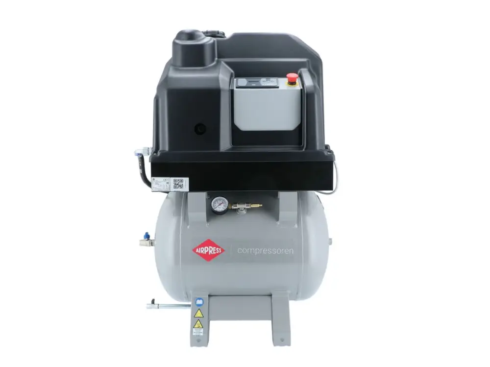 - Gemakkelijk te bedienen en compacte compressor, dat is schroefcompressor met ketel.