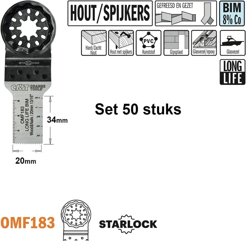CMT OMF183-X50 Multitoolzaagblad voor hout met spijkers 20 mm 50 Stuks