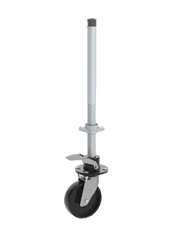 - De Ø200 mm steigerwielen voor de RS4 zijn opspindelbaar, dus in hoogte verstelbaar. Zo is de steiger ook gemakkelijk op oneven ondergronden te plaatsen.