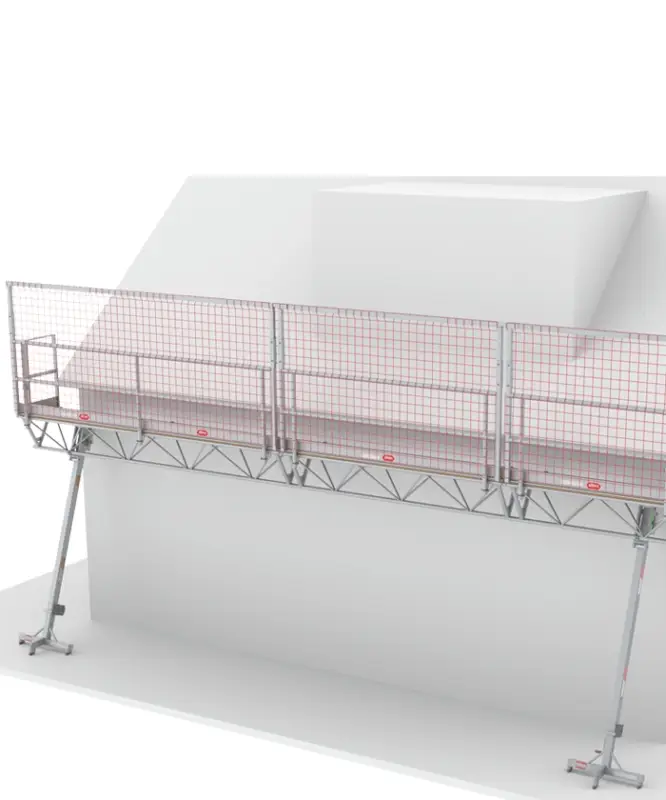 - Met slechts enkele handelingen bouw je de modulaire componenten op tot een complete werkbrug met dakrandbeveiliging