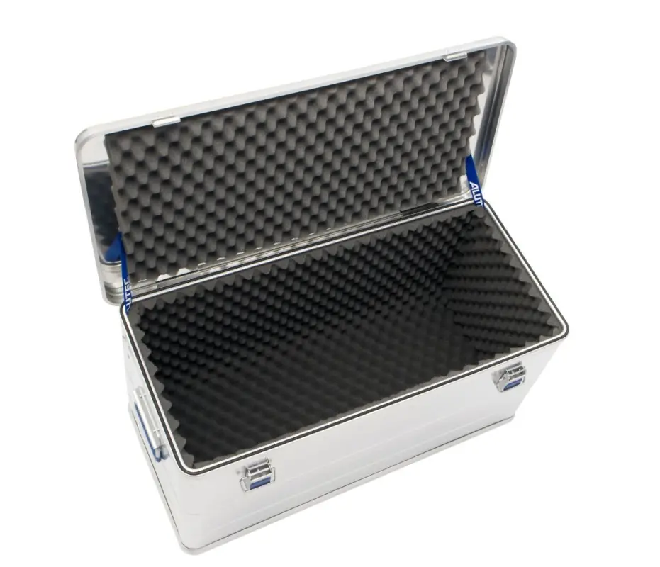 De COMFORT 92 aluminium transportkist met wanddikte van 1 mm is extra sterk en uiterst geschikt voor vakmensen. Voorwerpen kunnen op een veilige manier worden opgeborgen en eenvoudig worden verplaatst. De binnenkant is afgewerkt met plukschuim. Geperforeerd schuimrubber waardoor de inhoud tijdens het vervoeren nog meer schokken kan opvangen.