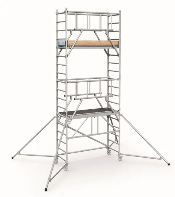 - Veilig en snel door 1 persoon op- en af te bouwen dankzij de voorloopleuningen en platformen met 2 m tussenruimte.